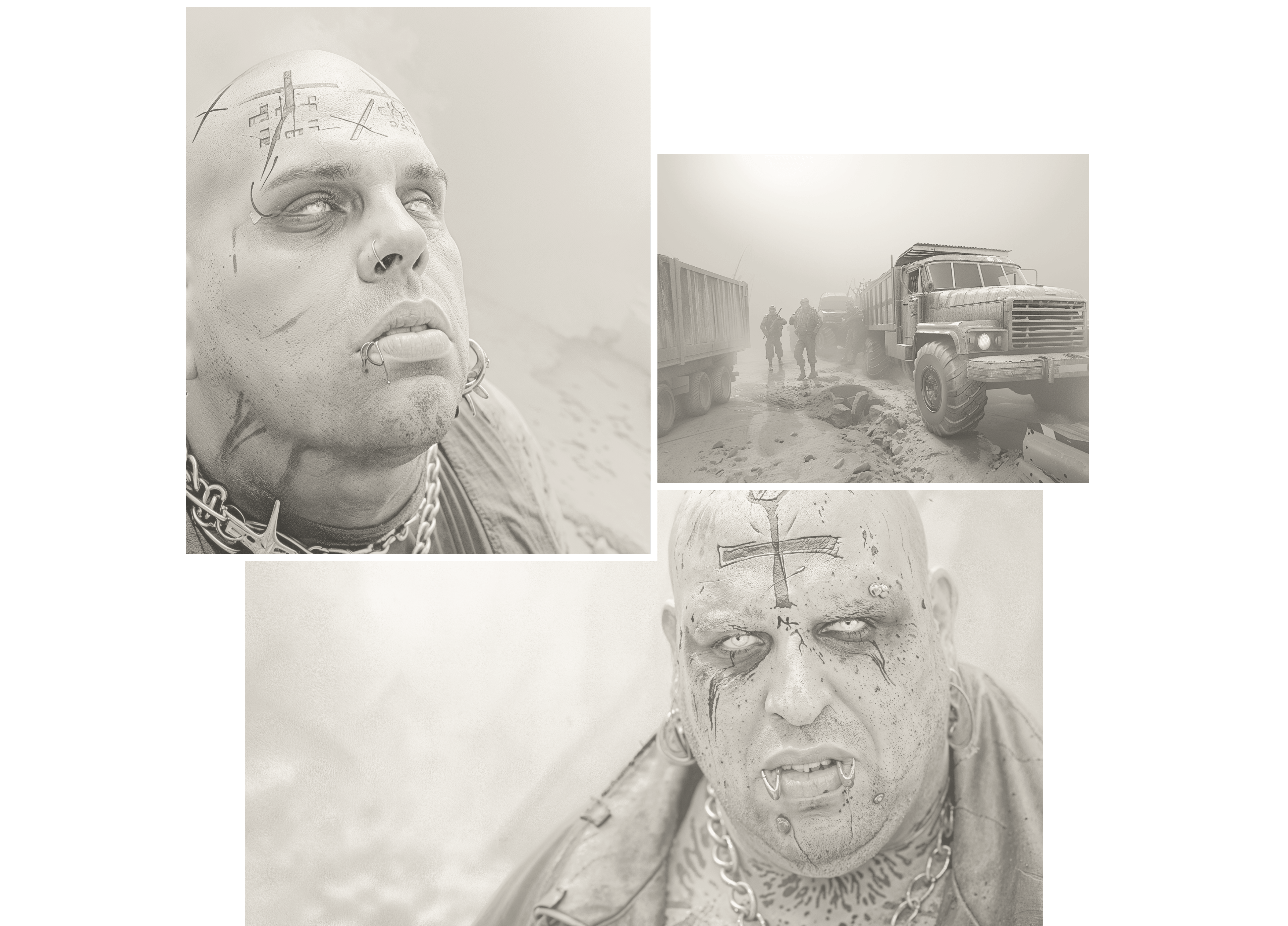 Our convoy comes to a halt as a group of jackals emerges from the shadows of the ruins. “Vile bastards,” Bajar spits out contemptuously, and we open the cargo box of the truck and haul out several crates of schnapps. The henchmen of this place scrutinize us with cold, calculating eyes. Mauler, the leader of the group, just nods curtly.