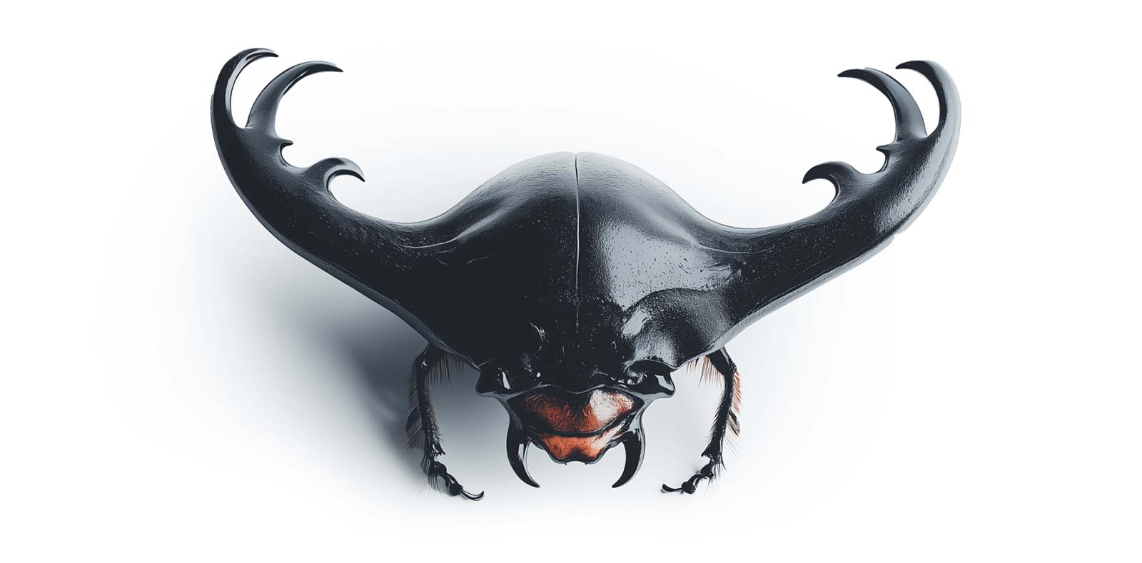 Die Hörner der Käfer ähneln Geweihen, die sich imposant und kraftvoll nach außen krümmen. Sie verleihen den Käfern eine majestätische und bedrohliche Ausstrahlung urzeitlicher Tiere.