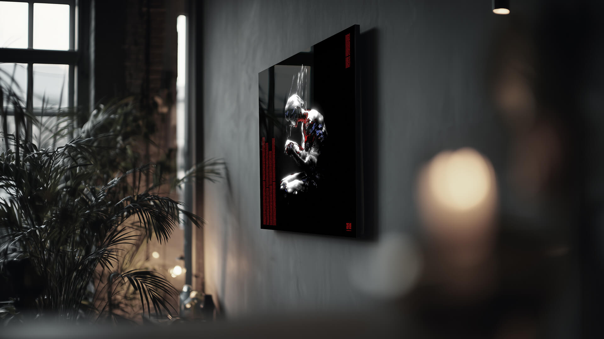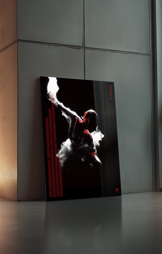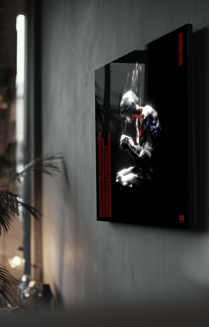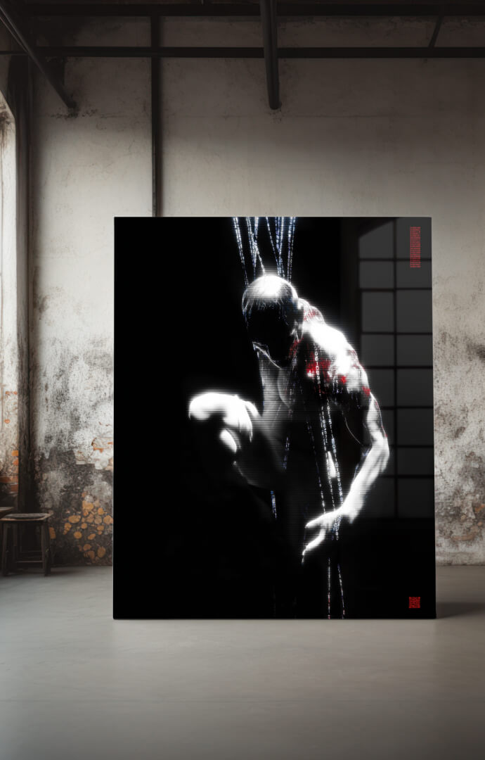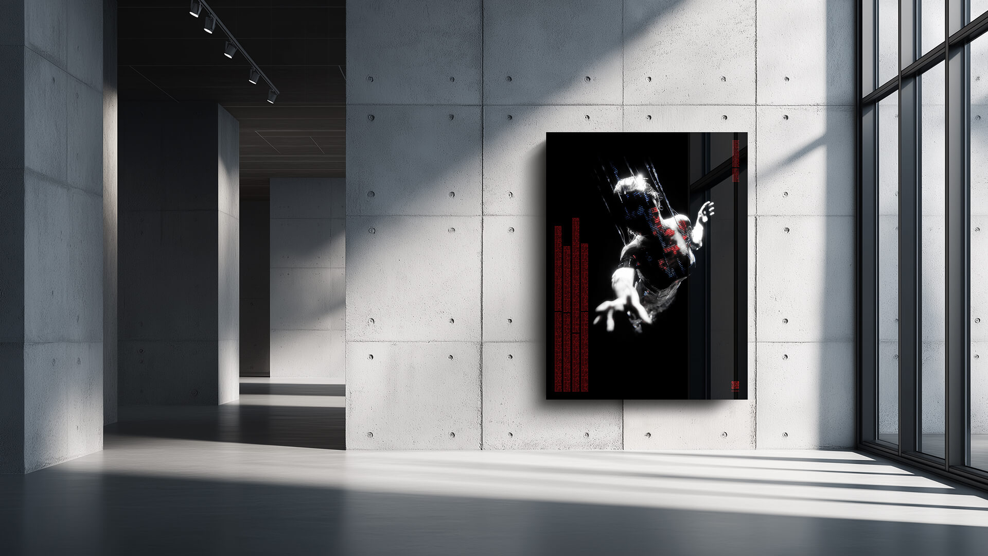 Blaues Licht. Rotes Licht. Sie hängt. Binärstränge schneiden in nackte Haut. Kein Engel, kein Dämon – nur ein Rest von dazwischen.